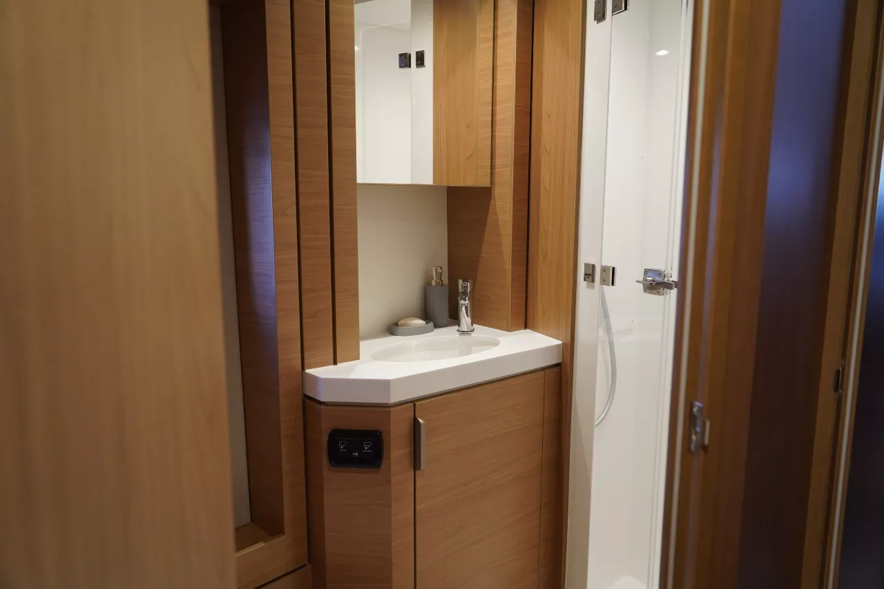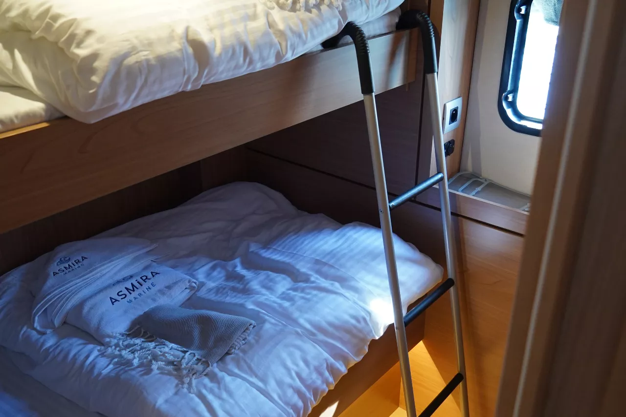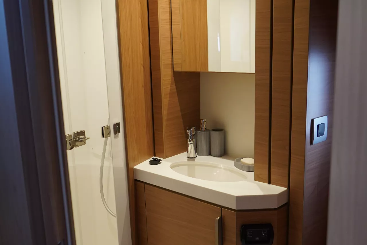 Brought to life by Bali 4.6’s ‘Open Space’ concept, Amelia offers seamless comfort to its guests with spacious and airy living areas. Amelia combines luxury and functionality with its 5 cabins and 4 bathrooms, accommodating up to 10 guests. Its modern, fully equipped kitchen and comfortable interior spaces blend comfort and aesthetics in every detail.