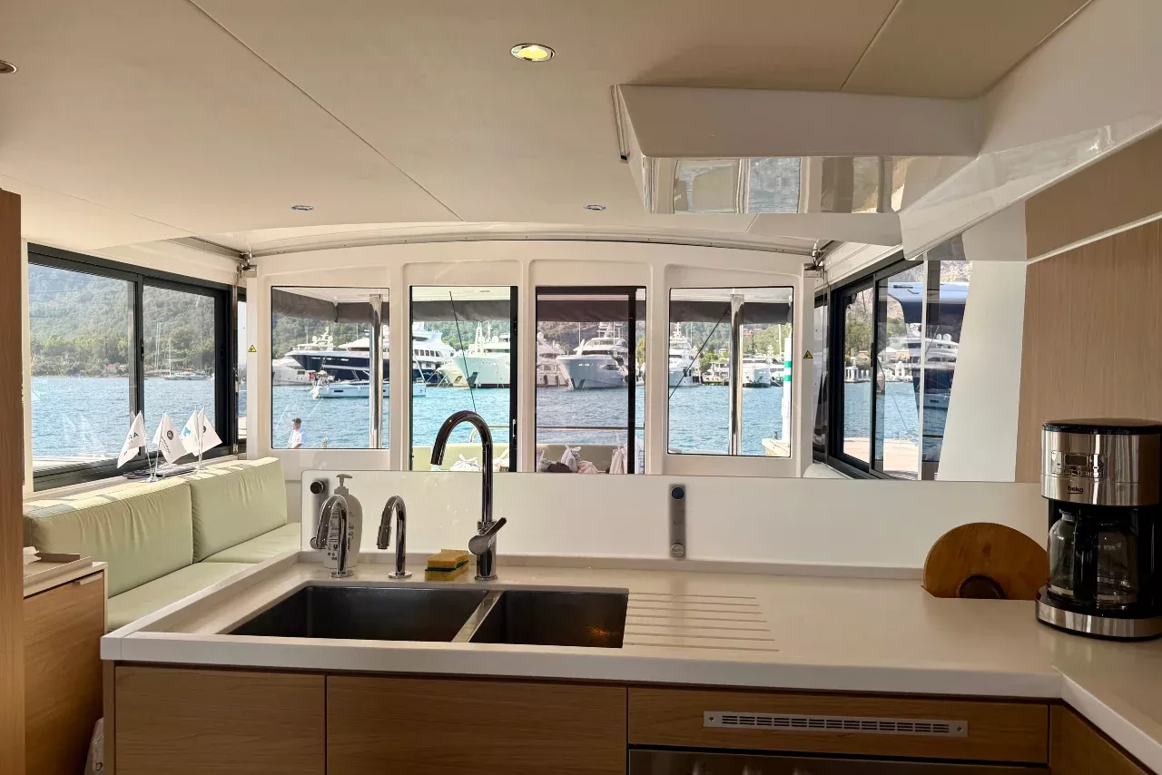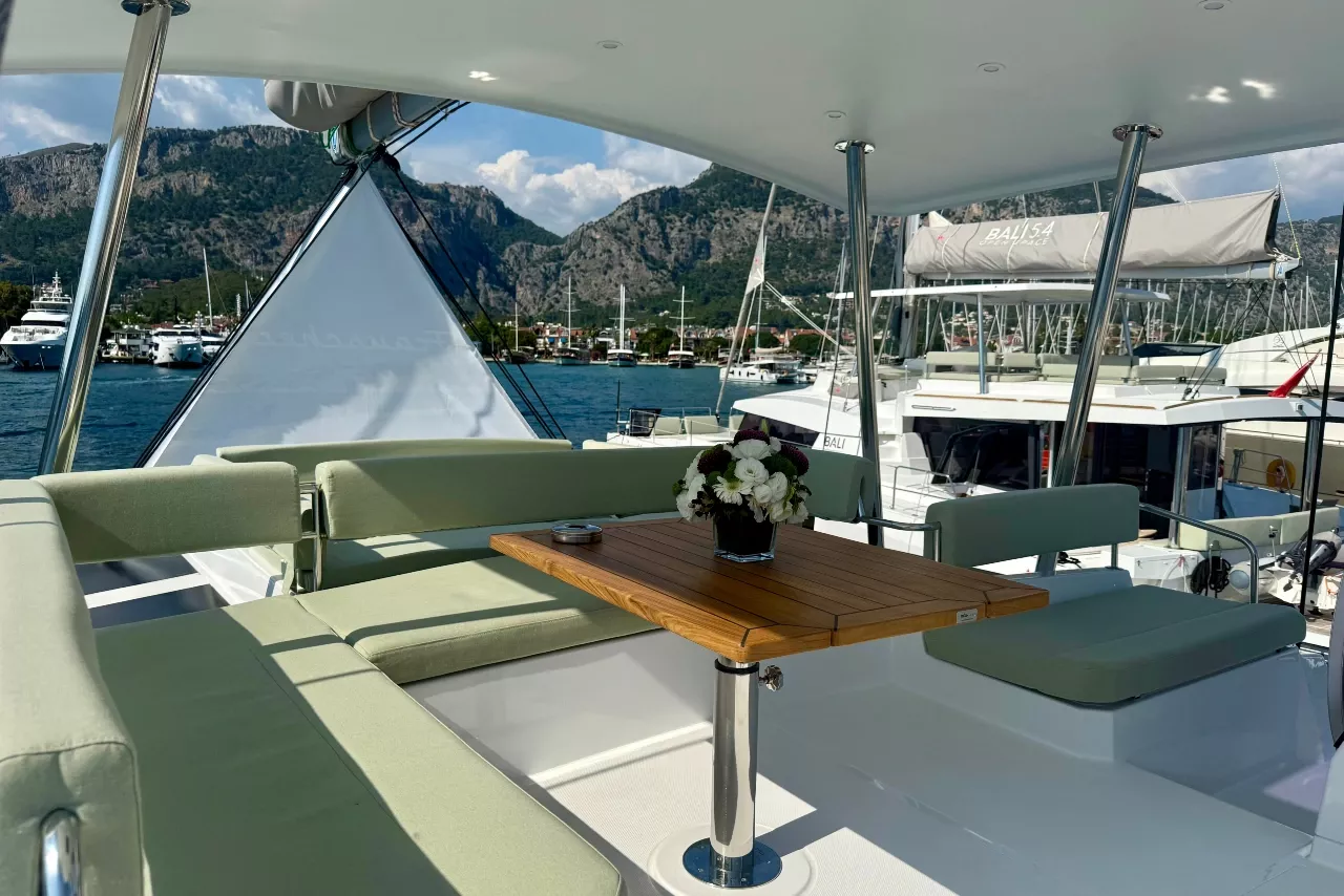 The Bali 4.6 catamaran, a favorite choice among sea lovers, now offers an even more exclusive experience. With its modern design and sophisticated details, Amelia creates a unique space of comfort and tranquility for its guests, designed to make every moment spent at sea unforgettable.