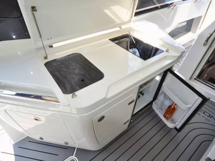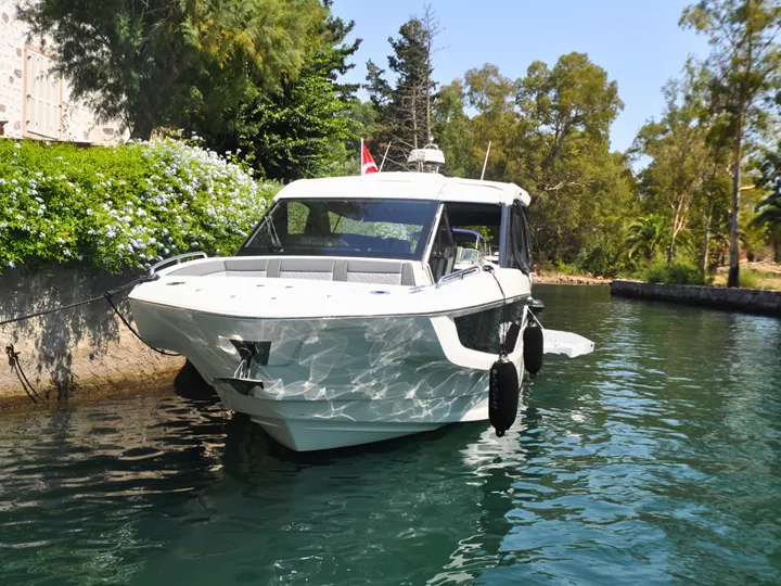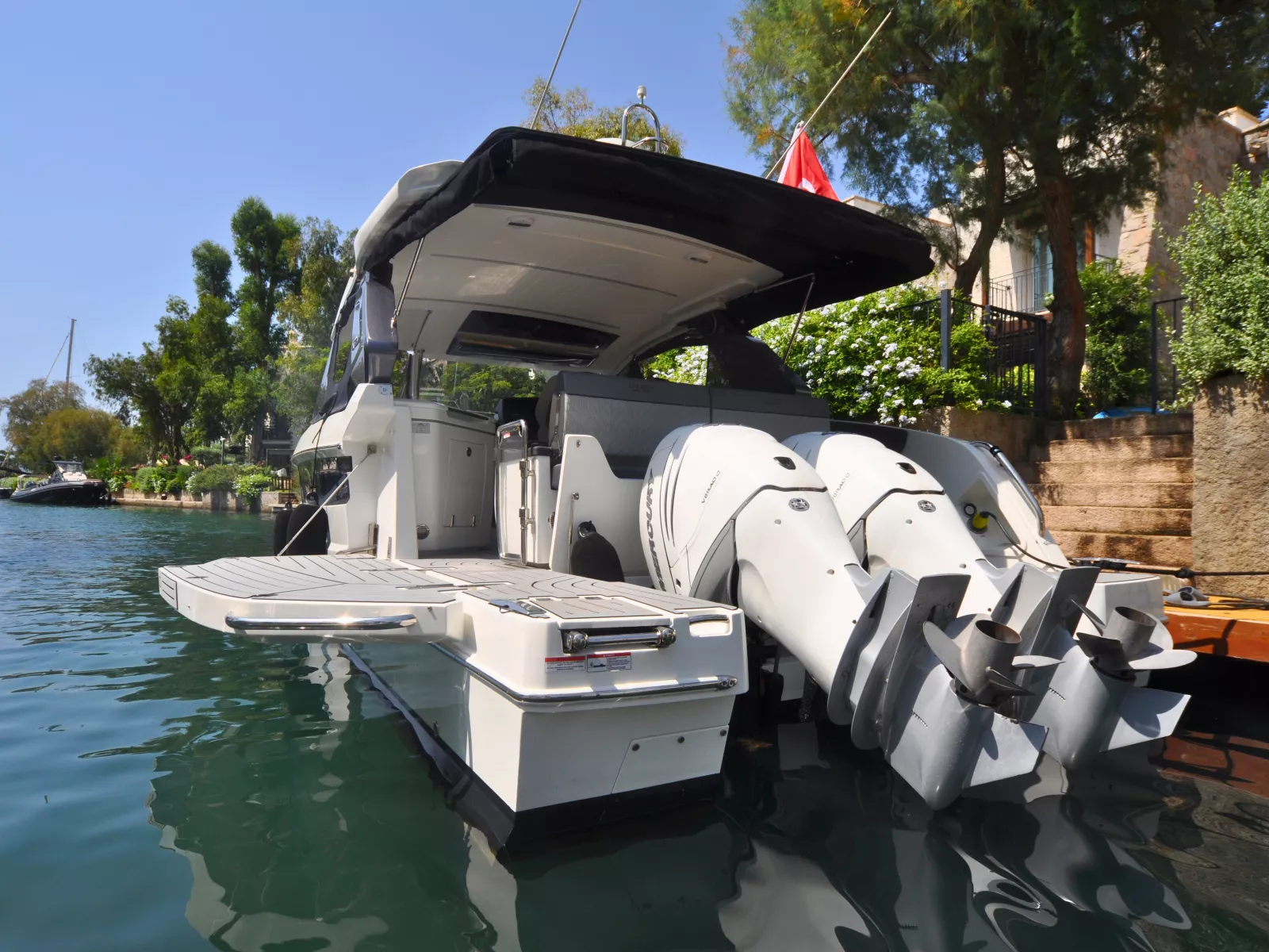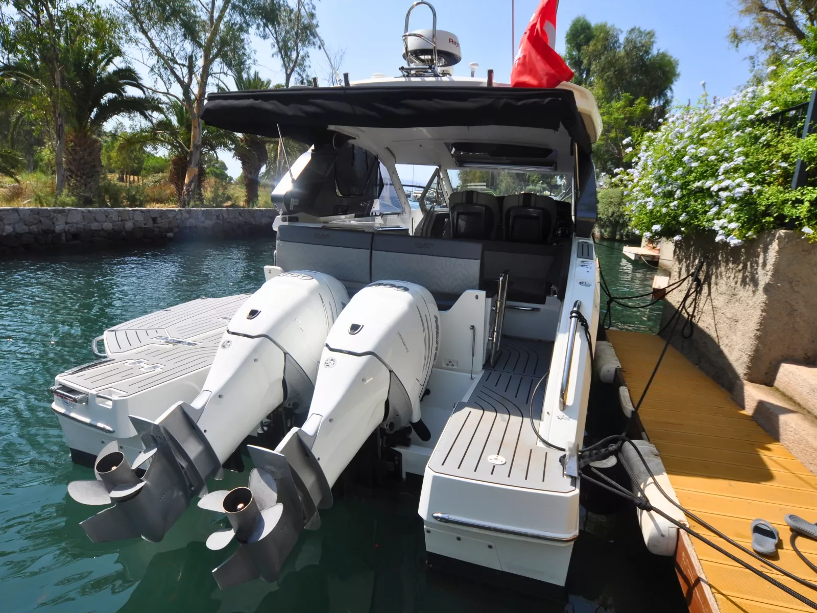 Güçlü, Lüks ve Konforlu Seyir 2022 model Galeon 325 GTO, performans, konfor ve şıklığı bir arada sunuyor. 2 x Mercury Verado 400 XXL motor, Joystick kontrol ve yenilikçi Skyhook özelliği ile manevra ve demirleme çok kolay. Tekne, yan taraf açılan balkonuyla hem kokpit alanını hem de suya yakın yaşam alanını genişletiyor. Konfor açısından da eksiksiz olan teknede 5 kW jeneratör, klima ve su yapıcı gibi donanımlar bulunuyor. Galeon 325 GTO, kompakt ama ferah tasarımı, yüksek performansı ve lüks detaylarıyla denizdeki her seyri özel kılıyor. Hemen teslimat için hazır – bir sonraki deniz maceranıza başlayın!
