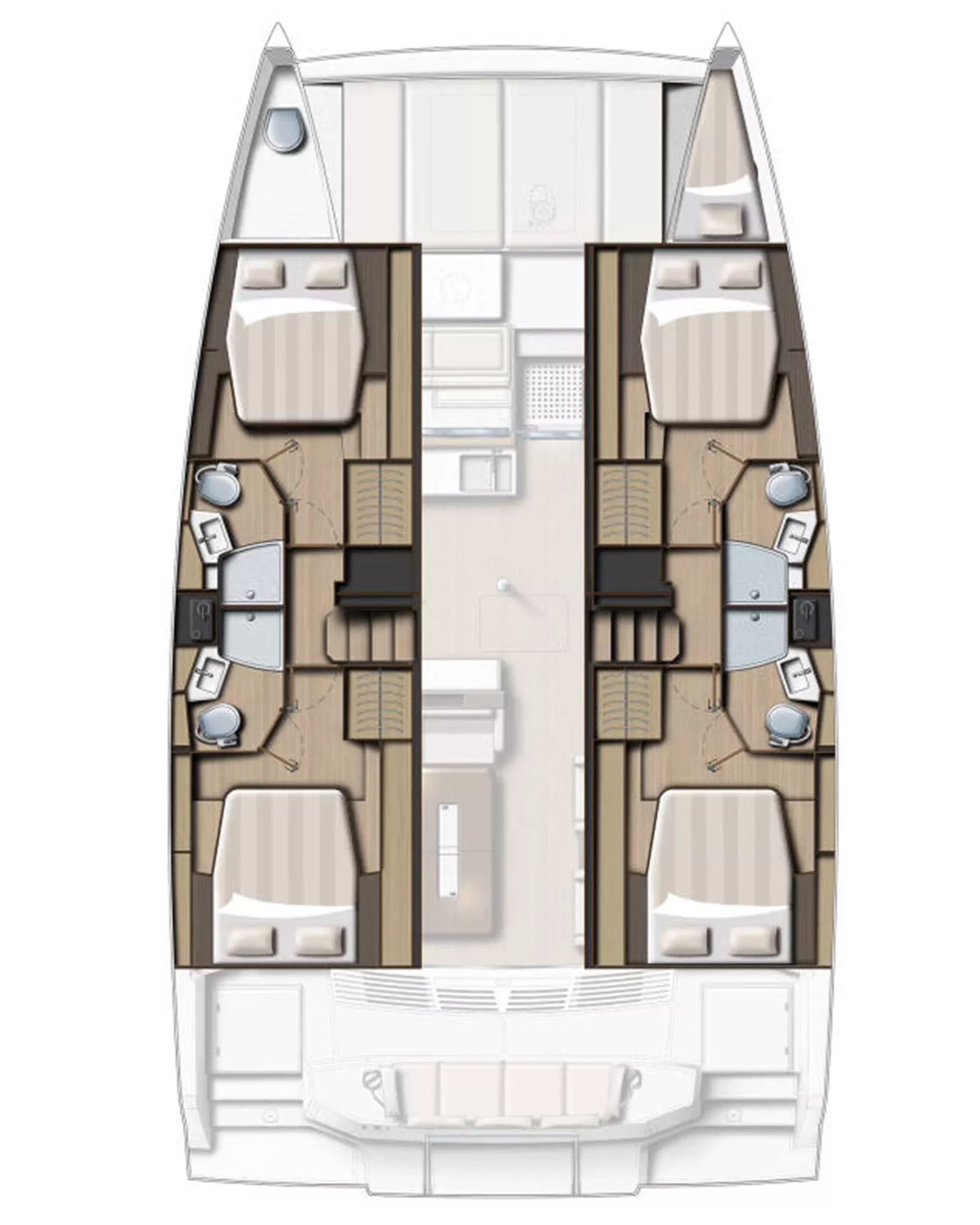 • Kıç kabin yatakları 190 cm x 160 cm