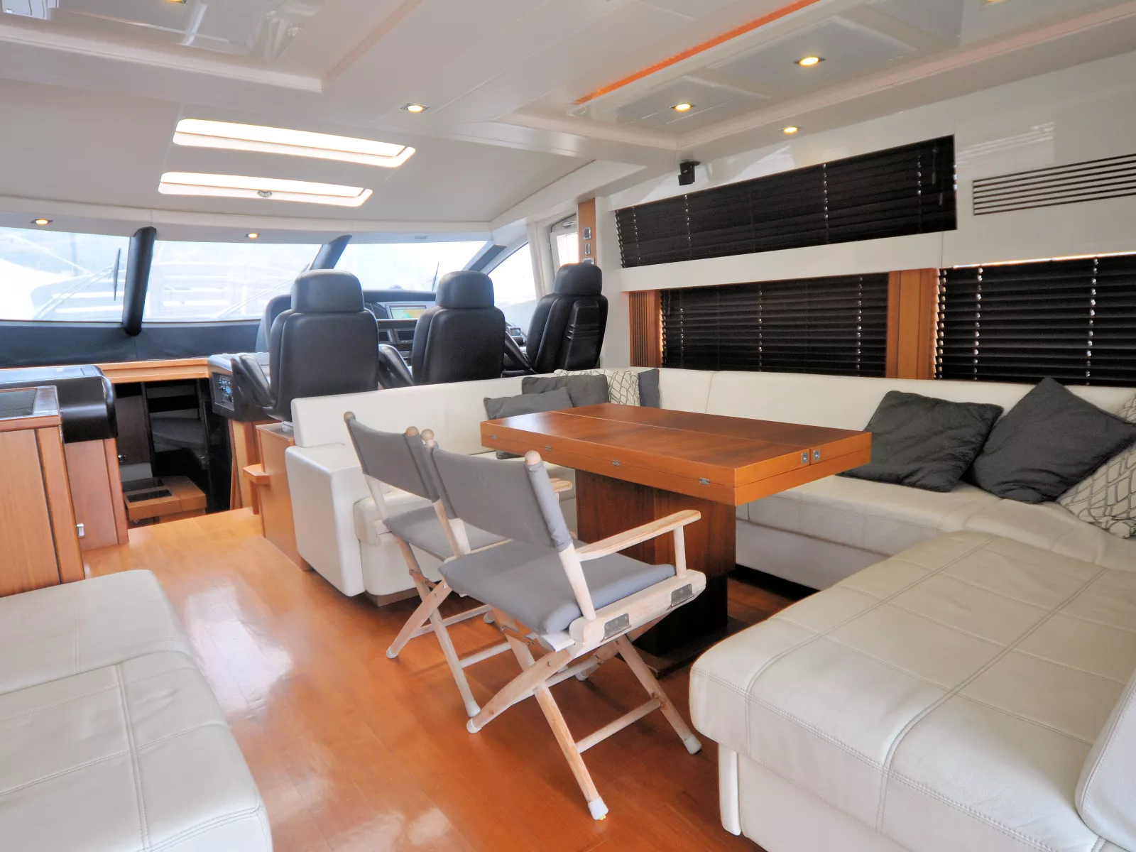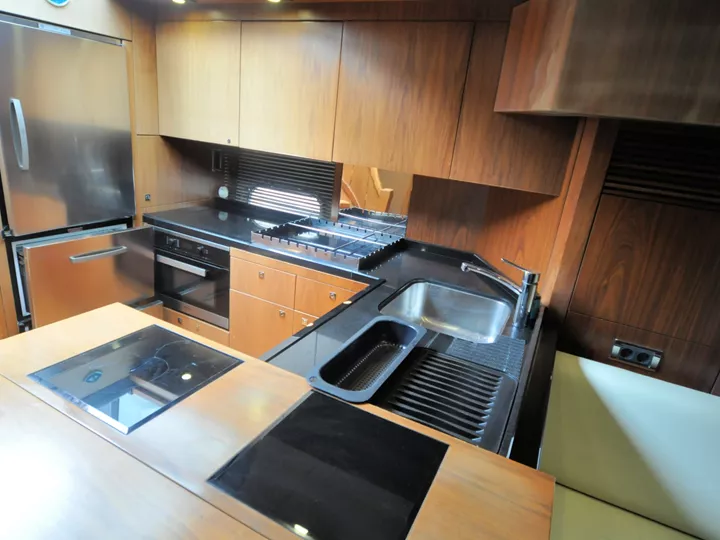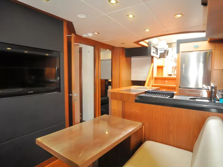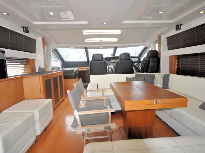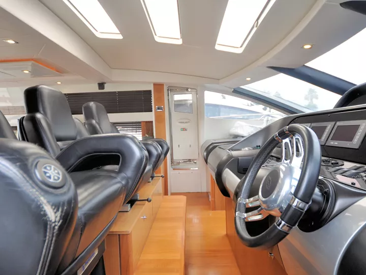 Broker Görüşü: Görüntülemekte olduğunuz Sunseeker Predator 74, 25 knot seyir hızı ve 38 knot maksimum sürate ulaşabilen performanslı bir offshore spor motor yattır. Kabrio tavan, hidrolik platform, jeneratör, su yapıcı ve elektrikli vinçler gibi ihtiyaç duyulabilecek tüm donanımlara sahiptir. Mürettebatlı bakılmış olan tekne, yüksek kondisyonda ve oldukça iyi durumdadır.